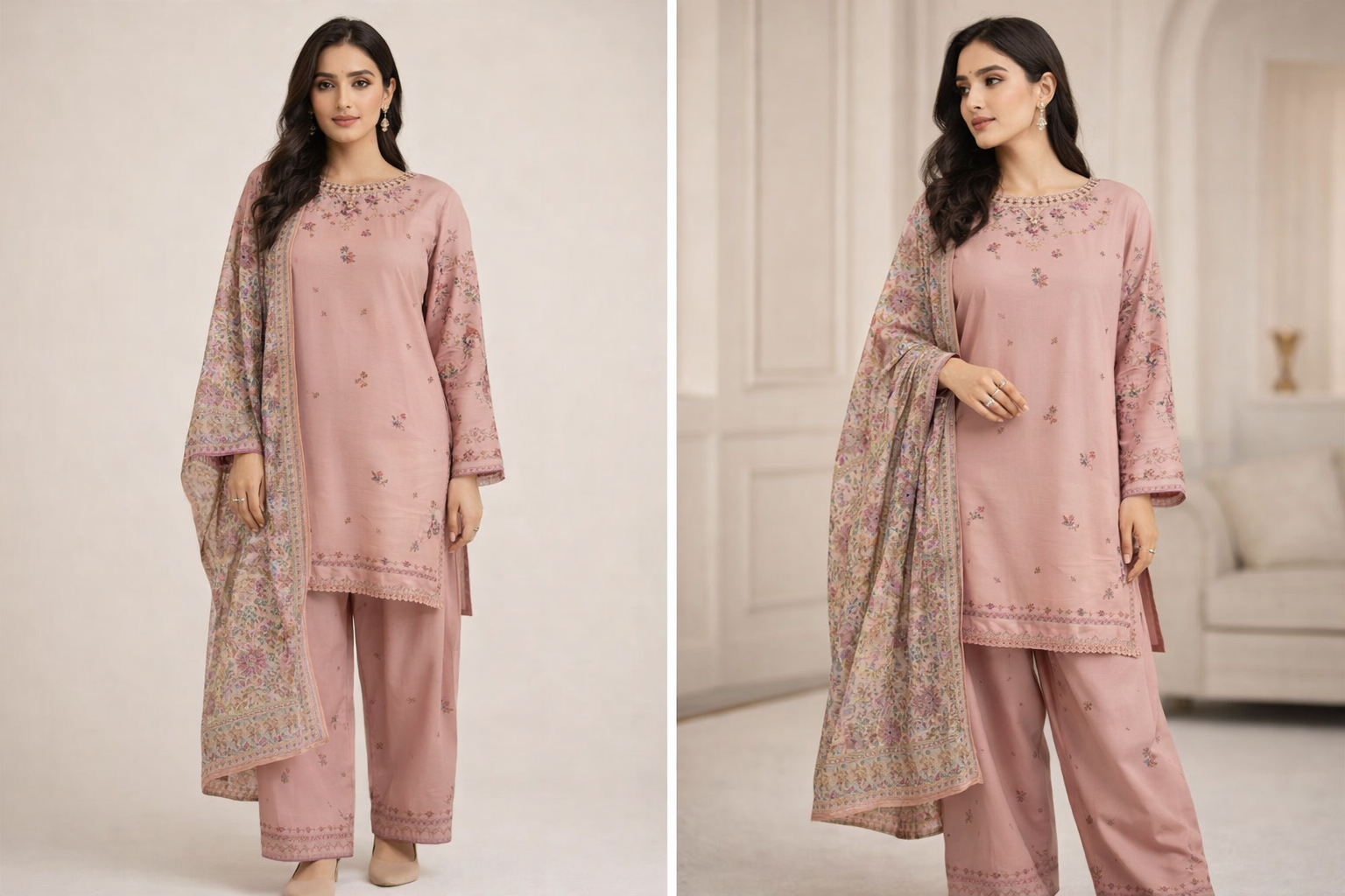 Step into the festive season with elegance and charm with this premium pink embroidered Eid suit. Designed for women who love traditional fashion with a modern touch, this outfit features delicate floral embroidery and detailed embellishments that create a luxurious and graceful look.
